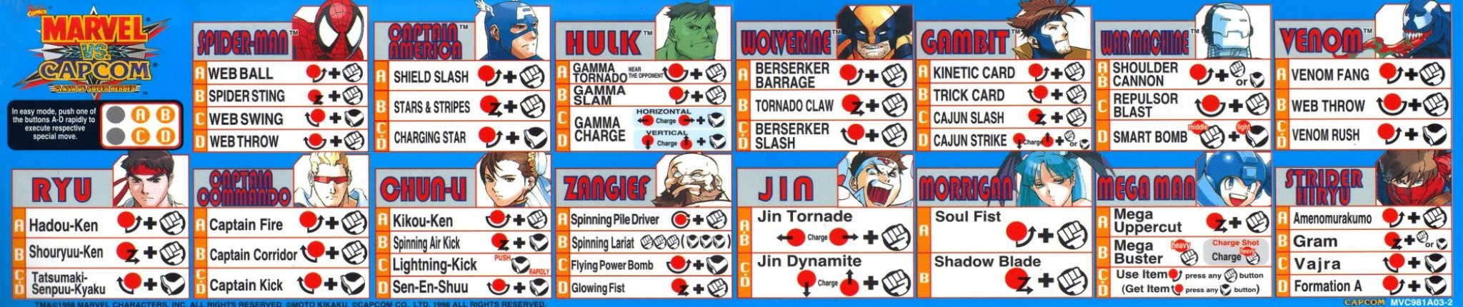 Marvel Vs Capcom Clash Of Super Heroes Arcade Commands Moves